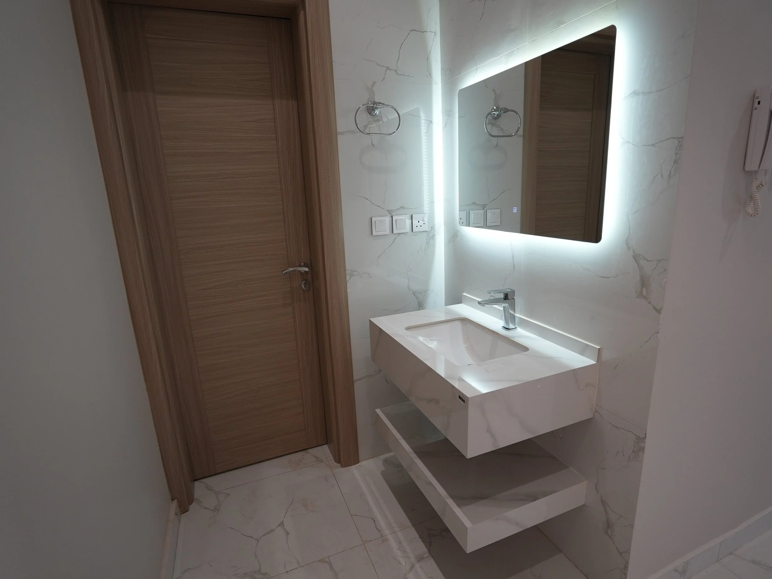 به غرفة نوم ماستر مع حمام، ومسبح للكبار عمق متدرج من ٧٠سم -١٥٠سم وصالة ومطل ومطبخ مفتوح على الصالة وطاولة طعام. وموقف سيارة داخلي.